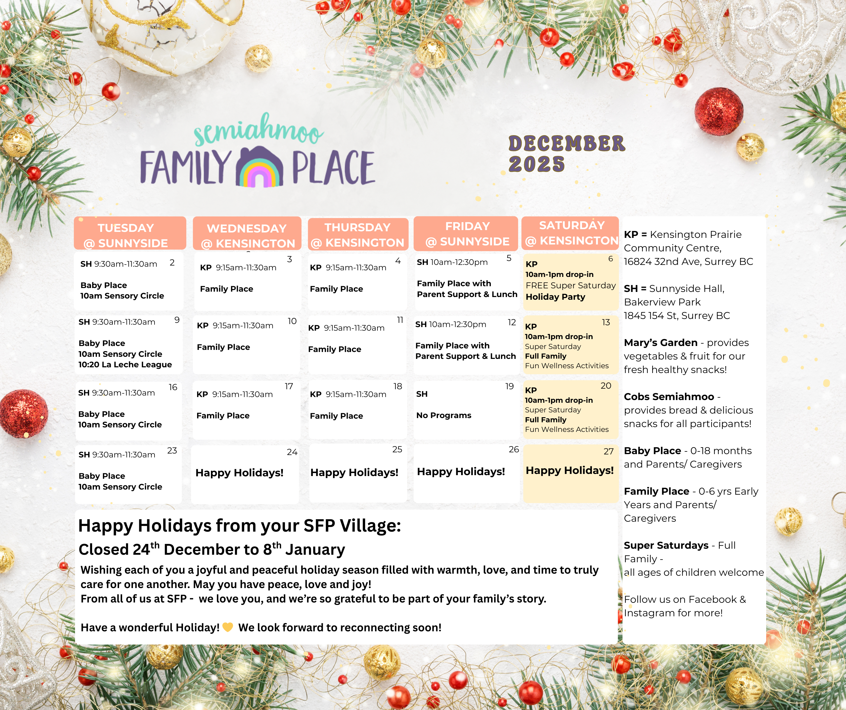 Semiahmoo Family Place began in 1991 after a group of new mothers recognized the need for parenting support in the community. Starting off as an entirely volunteer-driven organization, SFP now has regular staff and an active Board of Directors.